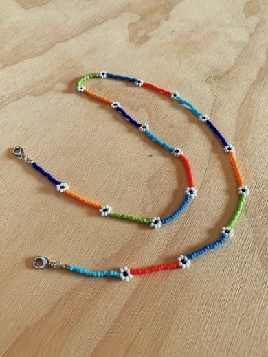 HAND BEADED MASK CHAIN - RAINBOW DAISY