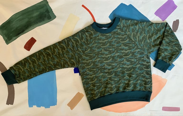 Only a handful are available for custom order. I got the last few yards of this deadstock french terry, and when it's gone, it's gone. Available in both men's and women's sleeve lengths and chest sizes 32"-46". Please leave your measurement in the notes at checkout. (Or shoot me an email if you have any questions and want to chat sizing.) Each sweatshirt will be custom sewn to your specifications.